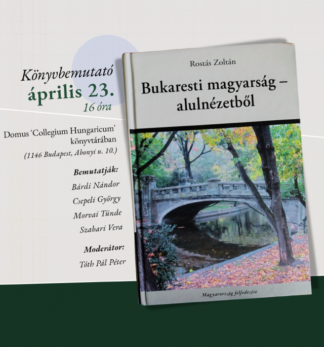 Szeretettel meghívjuk a Domus 'Collegium Hungaricum' épületében megrendezendő Rostás Zoltán Bukaresti magyarság – alulnézetből című kötetének bemutatójára.