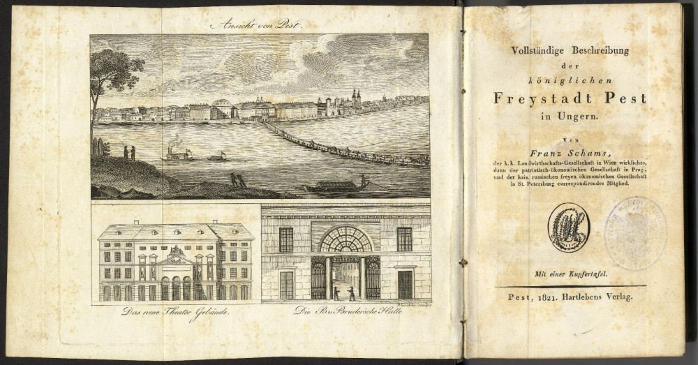 Nyitó illusztráció Schams Ferenc Buda város története című művéből, amely egy hajóhidat ábrázol, a mai Széchenyi lánchíd elődjét Forrás: MTA KIKAz első bérlemény szűkössége és kényelmetlensége miatt a Tudós Társaság új otthont keresett, és a Trattner–Károlyi-ház (a mai pesti belvárosban) tágasabb tere már lehetőséget adott arra, hogy az addig összegyűlt könyvanyag rendezettebben álljon fel, és a gyarapodó gyűjtemény intézményi arculata erősödjék. 1844. december 23. a folyamat egyik ünnepélyes csúcspontja, ekkor már közel ötvenezer kötetnyi állománnyal a könyvtár megnyílt a tudós közönség előtt.