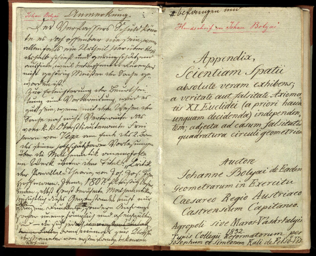 Bolyai János: AppendixForrás: MTA KIK Kézirattár és Régi Könyvek Gyűjteménye 545.091