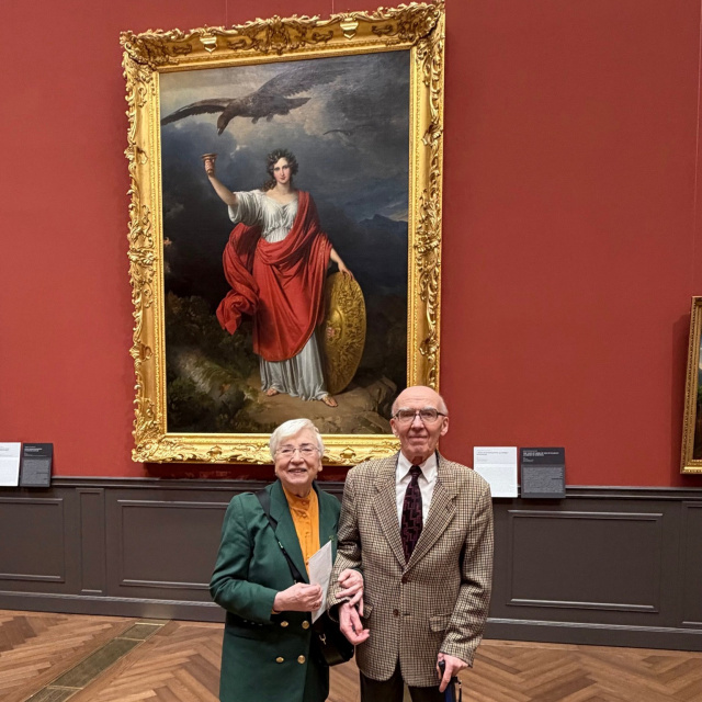 A Rozsondai házaspár, háttérben a Magyar Tudományos Akadémia címere, Johann Nepomuk Ender festménye, 1834Fotó: MTA KIK