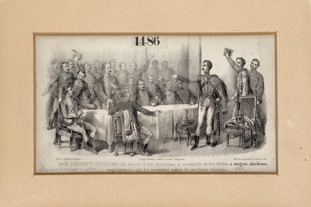 Széchenyi István felajánlja birtokainak egyévi jövedelmét. Kőre rajzolta Vinzenz KatzlerForrás: MTA KIK