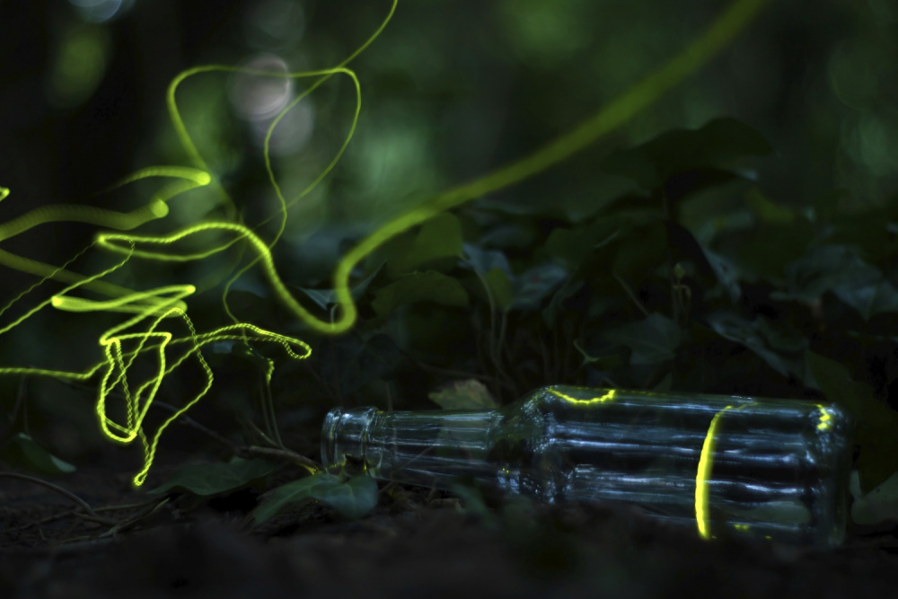 Minden év júniusában a szomszédos falu erdejében tömeges rajzásnak indulnak a szentjánosbogarak (Lampyridae), és ilyenkor az erdő esti fényjátéka pár napra teljesen elvarázsolja a látogatót. E rövid időszak alatt minden estét az erdőben töltöttem, hogy megfigyeljem és megörökítsem a jelenséget. Amikor besötétedett, a bogarak aktívan kezdtek repkedni, gyors, szabálytalan röppályájukat fénylő pontokként rajzolva a levegőbe. Az erdő természetes élőhelye sajnos nem mentes az emberi hatástól: több helyen találtam hulladékot, köztük egy üveget, amelybe a szentjánosbogarak is belekerültek. A fotográfiai célom nem csupán a rajzás rögzítése volt, hanem annak bemutatása is, hogyan befolyásolja az emberi tevékenység a természet apró élőlényeit. Szerencsémre az egyik bogár kirepült az üvegből, így sikerült a röppályáját megörökíteni. A fotón jól látszik a gyorsan mozgó, fénylő rovar, amely a térben szabálytalan mintázatot ír le, szemléltetve a Lampyridae természetes viselkedését az emberi hatások közepette. Ez a pillanat rávilágít arra, hogy a természet érzékenyen reagál az emberi jelenlétre, de a fajfenntartás szempontjából fontos viselkedésformákat – mint a fényjelzés és a párkeresés – a szentjánosbogarak még így is képesek fenntartani.