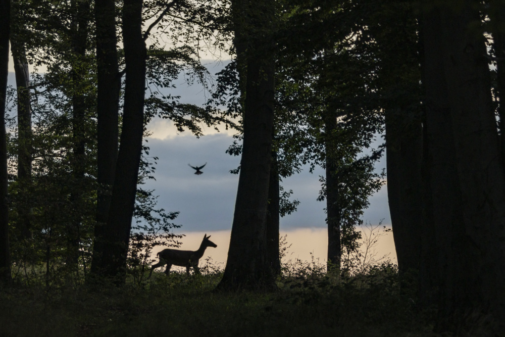 A kép a kedvenc fotós- és kirándulóhelyemen, a Medves-fennsíkon készült. Cserkelés közben egy szarvastehén lépdelt a fák között, miközben egy madár repült át felette. Sikerült olyan pillanatot megörökíteni, amely – úgy gondolom – számomra megismételhetetlen.