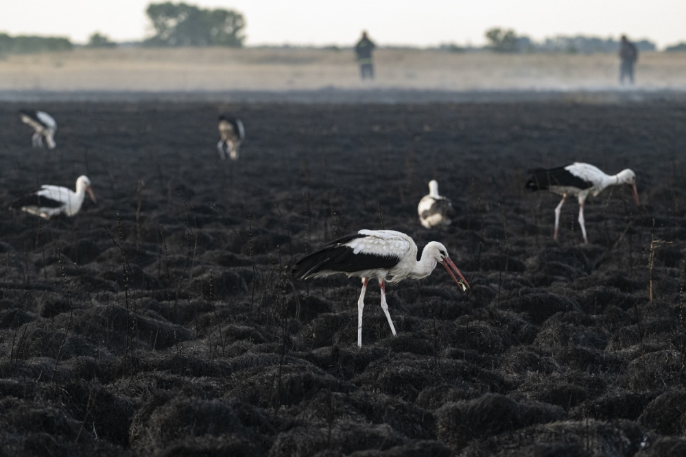 A vajdasági Bánátban, Hódegyháza határában, a túzokrezervátumban szándékos gyújtogatás nyomán júliusban gyorsan terjedtek a lángok. A környékbeli önkéntes tűzoltók gyors beavatkozásának köszönhetően lokalizálták a tüzet. A tűzoltók még a helyszínen voltak, amikor fehér gólyák tucatjai jelentek meg az üszkös zsombékokon és összeszedték a megperzselődött sáskákat, szöcskéket és egyéb rovarokat.