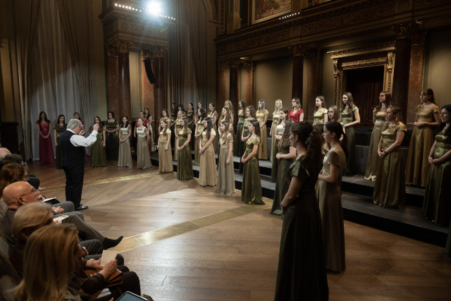 A Pro Musica Leánykar a Művészeti estek a Magyar Tudományos Akadémián XVI. estjén (2025. december 8.)(Az esten készült fényképek a fotóra kattintva tekinthetők meg.) Fotó: mta.hu / Szigeti Tamás
