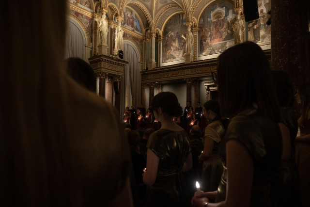 A Pro Musica Leánykar és a Cantemus Kórus a Művészeti estek a Magyar Tudományos Akadémián XVI. estjén (2025. december 8.) Fotó: mta.hu / Szigeti TamásA kóruscsalád műsorában Kocsár Miklós, Kodály Zoltán, Gyöngyösi Levente, Franz Biebl, Thoma Tallis, Johann Sebastian Bach, Giovanni Gabrieli, Sergei Rachmaninov, Havier Busto, valamint Kutrik Bence, John Rutter és Xaver Gruber művei hangzottak el. A koncertet záró Csendes éjjel – a világ legismertebb karácsonyi énekével – a kristálytiszta zenei hangok mellett a sötét térben világító mécsesnyi fényekkel is megteremtette a kórus a közelgő karácsony meghittségét.