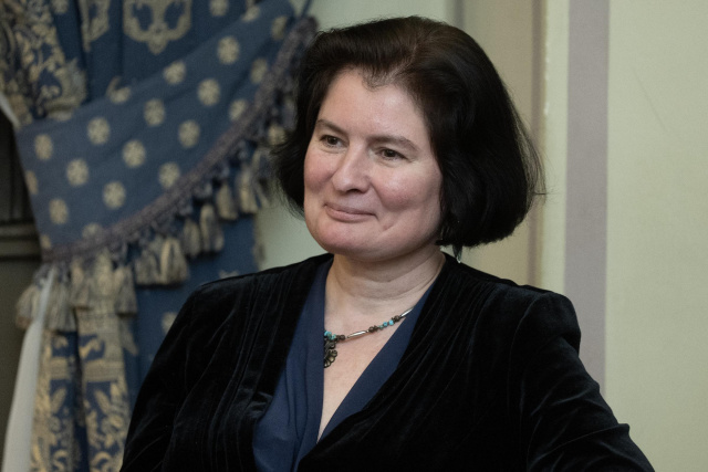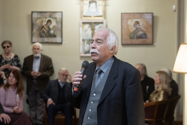 Vdovkina Anasztaszija a Művészeti estek a Magyar Tudományos Akadémián XVI. estjén (2025. december 8.) Fotó: mta.hu / Szigeti TamásAz orosz származású, Kolozsváron élő ortodox képzőművész alkotásai tág horizontú művészeti világot teremtenek. Vdovkina Ansztaszija művészete a szakrális gyökereket és ikonfestészeti hagyományokat a kortárs képzőművészet kifejezésmódjaival ötvözik. „Műveiben egyszerre jelenik meg az évszázados, sőt évezredes hagyomány és a művészi szabadság, így alkotásai kiválóan illeszkednek a kortárs képzőművészet örök értékeinek világába” - mondta az estet köszöntő beszédében Freund Tamás.