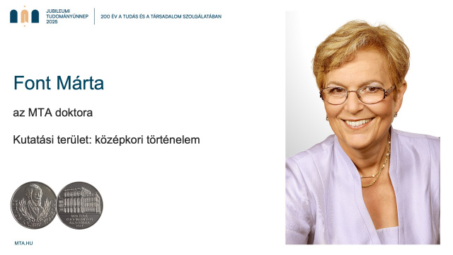 Font Mártát, a Magyar Tudományos Akadémia doktorát, a Pécsi Tudományegyetem Bölcsészet- és Társadalomtudományi Kar Történettudományi Intézet Középkori és Koraújkori Történeti Tanszék professor emeritáját, a magyar és a környező szláv népek középkori történelmének nemzetközileg elismert kutatóját a 11–13. századi Közép- és Kelet-Európa történelmének vizsgálatáért, valamint tudomány-népszerűsítő és tudománypolitikai vonatkozású tevékenysége elismeréseként;