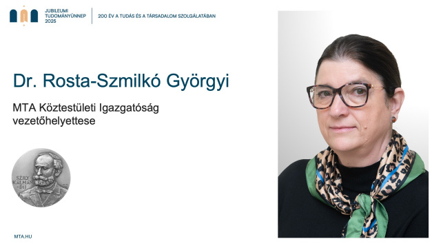 dr. Rosta-Szmilkó Györgyinek, a Magyar Tudományos Akadémia Titkársága Köztestületi Igazgatóság köztestületi vezetőhelyettesének, akadémiai vezető-főtanácsadónak a Magyar Tudományos Akadémia Titkárságán több mint négy évtizede tartósan magas színvonalon, nagy szorgalommal és lojalitással végzett munkájáért, az MTA működését érintő számos fontos szabályozás, elnöki határozat kidolgozásában való aktív részvételéért, az MTA nemzeti programjainak indításával és működtetésével kapcsolatos kulcsszerepéért, valamint az MTA200 rendezvénysorozat feladatainak előkészítésében és lebonyolításában vállalt kimagasló szakmai tevékenységéért;