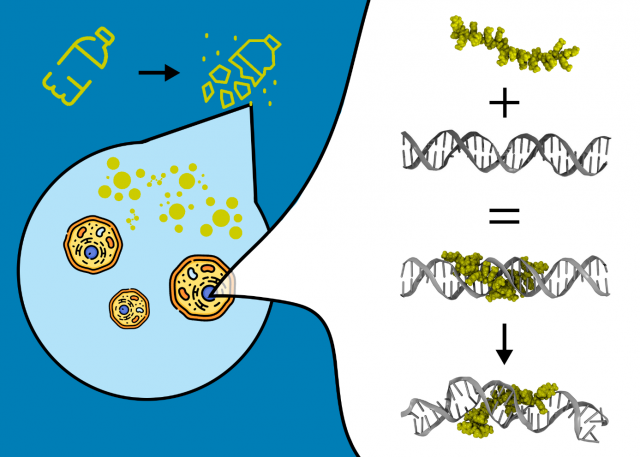 Számítógépes szimulációkkal megmutattuk, hogy bizonyos módosított műanyag láncok stabilan kapcsolódnak a DNS-hez, megváltoztatva annak alakját. Ezek az eredmények segíthetnek megérteni a környezetben felhalmozódó műanyag szemétből keletkező mikro- és nanoműanyagok egészségügyi hatásait, és magyarázatot adnak korábbi kísérleti eredményekre, amelyben ezen anyagok mutagén hatásait mutatták ki.