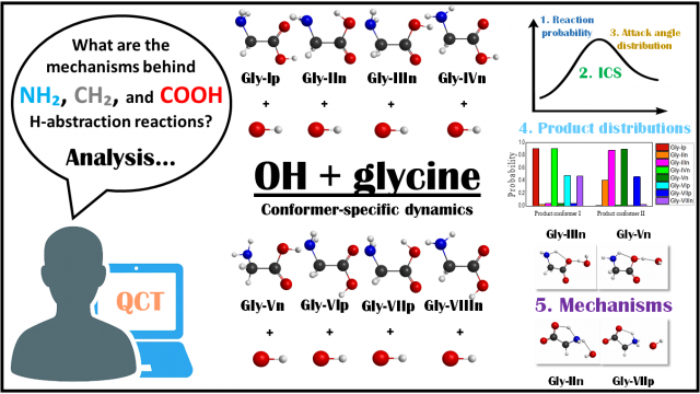 A kémiai reakciók állapotszelektív, atomi szintű dinamikájának megértése a modern kémia egyik központi témája. A hagyományos mód-specifikus reakciódinamikai vizsgálatokon túllépve, a jelen munka a funkciós-csoport- és a konformer-specificitás fogalmát vizsgálja a glicin molekula (H2NCH2COOH) hidroxilgyökkel (OH) való reakciójának elméleti tanulmányozása során.
